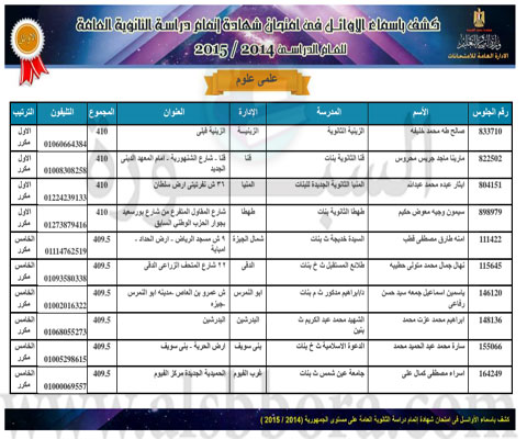 بالاسماء.. ننشر اوائل الثانوية العامة