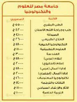 "السبورة" تنشر المصروفات الدراسية لكليات جامعة مصر للعلوم والتكنولوجيا لعام 2015.