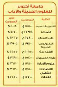 "السبورة" تنشر المصروفات الدراسية لكليات جامعة أكتوبر للعلوم والآداب لعام 2015.