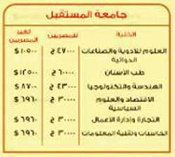 "السبورة" تنشر المصروفات الدراسية لكليات جامعة المستقبل لعام 2015.