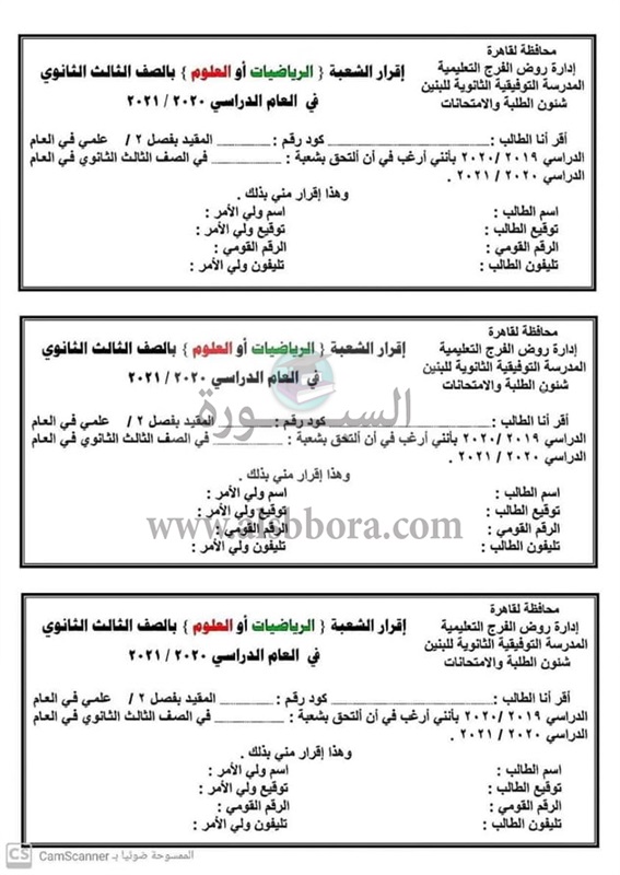 حيث يقوم الطالب بملى الاستمارة بناء على رغبته بقيده فى الصف الثالث الثانوى، بكتابة اسمه وتوقيعه ورقمه القومى وتليفونه المحمول او المنزلى، بالاضافة الى اسم ولى الامر وتوقيعه ورقمه القمومى وتليفونه.