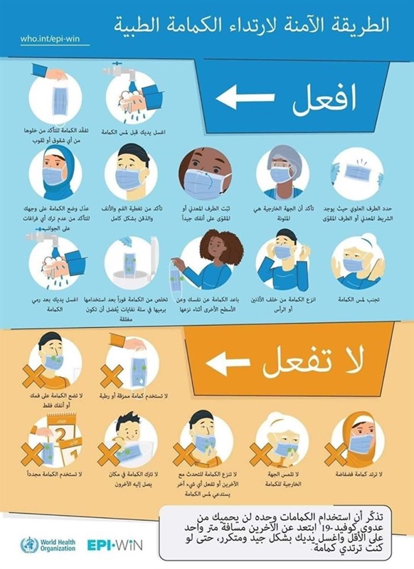 والانفوجراف التالى يوضح لك كيفية ارتداء الكمامة والتى جاءت عن طريق الصور التالية: