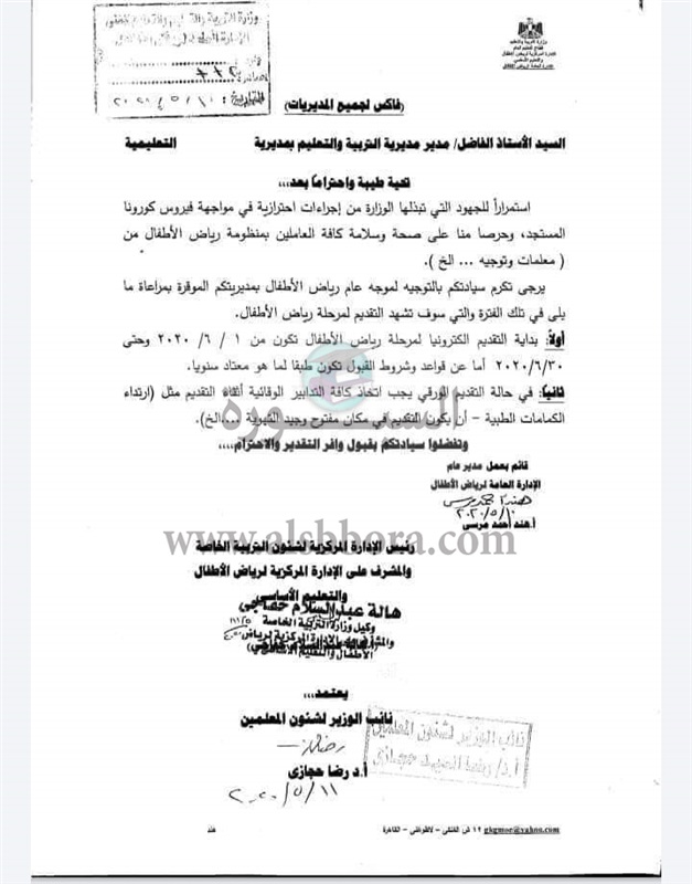 ولفتت الوزارة إلى أن المديريات تلزم من يتقدم لابنه بالمربع السكني له طبقا للعنوان المدون ببطاقة الرقم القومي وتعتبر الإدارة التعليمية مربع سكني واحد لجميع المدارس الرسمية للغات التابعة لنفس ذات الإدارة ويجوز توزيع المتقدمين لاقرب مدرسة في حاله وجود أماكن شاغرة وفق ترتيب السن، وأن يتم توقيع ولي أمر الطفل على تعهد بسداد المصروفات الدراسية في الموعد المحدد، ويجب أن يجتاز الطفل المقابلة الشخصية بالمدارس الرسمية للغات .