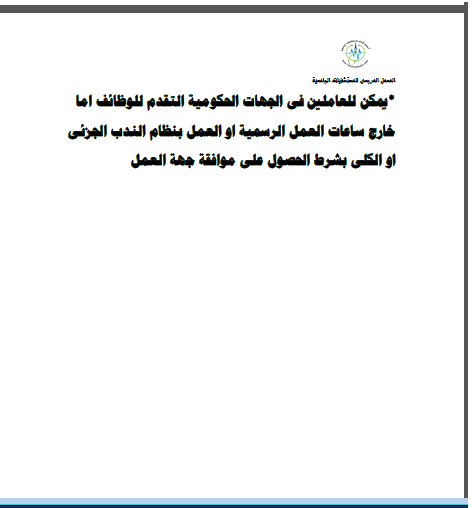للوظائف اما خارج ساعات العمل الرسمية أو العمل بنظام الندب الجزئى أو الكلى بشرط الحصول