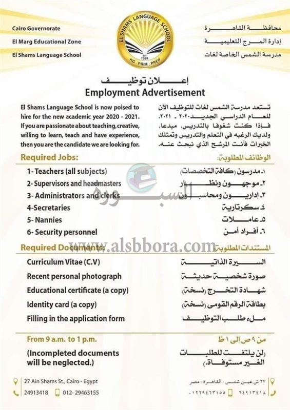 عاجل| مدارس الشمس تعلن عن وظائف جديدة للمعلمين والمعلمات في جميع المواد.. ننشر نص الإعلان