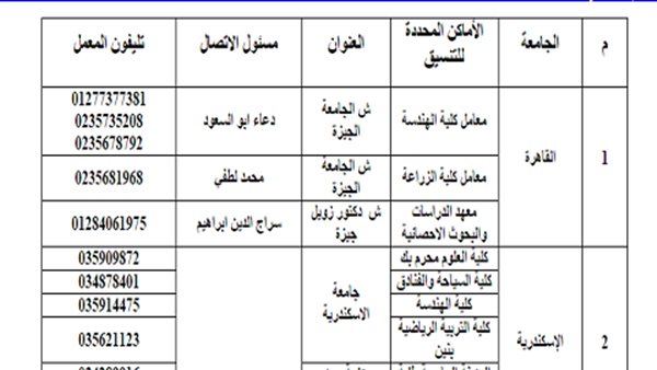 من جانبها السبورة تنشر اماكن المعامل في الجامعات وارقام تلفونات المسؤولين عنها