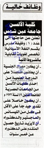 أعلنت جامعة عين شمس تعلن عن وظائف جديدة لأعضاء هيئة التدريس "من معيد إلي أستاذ" خلال الأيام المقبلة وذلك وفقا لنص الإعلان التالي :-