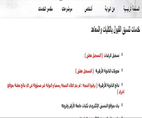 موضوعات ذات صلة O مفاجأة .. بوابة الحكومة المصرية نتيجة تنسيق الثانوية الازهرية لم تعلن رسميا حتي الان O بالاسم ورقم الجلوس اعرف نتيجة تنسيق الثانوية الازهرية .. انخفاض في نسب القبول عن العام الماضي O ننشر نتيجة تنسيق طلاب الشهادات الفنية والدبلومات .. أطبع بطاقة ترشيحك من هنا