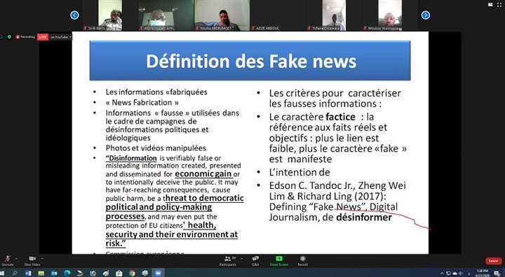 نظم اتحاد وكالات أنباء دول منظمة التعاون الإسلامي (يونا)، اليوم الثلاثاء، ورشة عمل افتراضية (عبر الفيديو) باللغة الفرنسية، حول طرق تدقيق الأخبار ومكافحة الشائعات (كوفيد19)، شارك فيها 110 إعلاميين من مديري ومنسوبي وكالات الأنباء والإذاعات والتلفزيونات والصحف والمنصات الإلكترونية في دول المجموعة الإفريقية والإعلاميين في الأقسام الفرنسية في دول المجموعتين العربية والآسيوية الأعضاء في المنظمة وخارجها من المجتمعات الإسلامية.