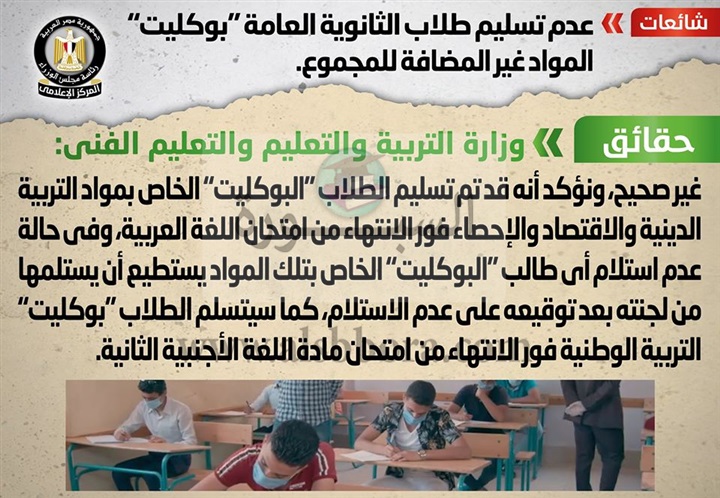 أصدرت وزارة التربية والتعليم بيانا هاما بشأن امتحانات الـ"بوكليت" للثانوية العامة .