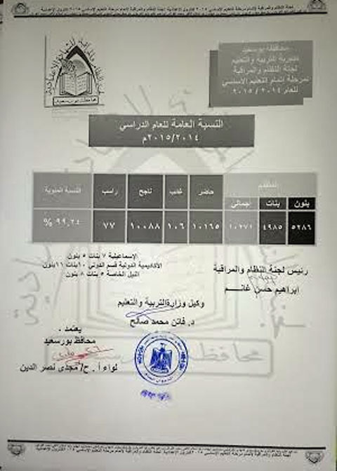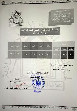 اعتماد نتيجة الشهادة الإبتدائية و الاعدادية "الدور الثاني" ببورسعــيد