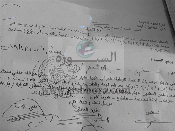 اعتماد الترقية للمعلمين باثر رجعى من 2019/1/1.. مستند