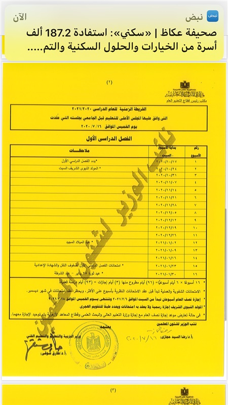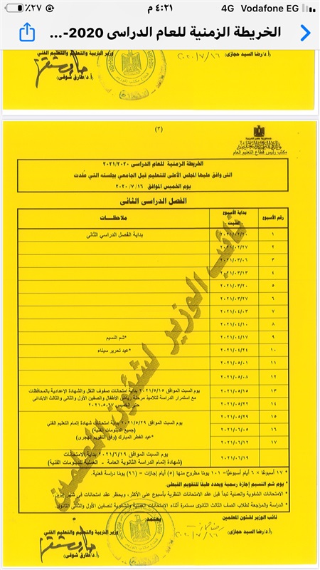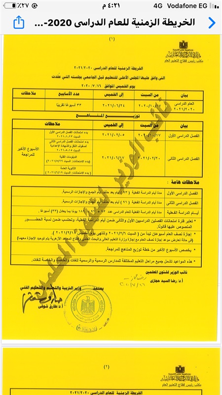 ننشر الخريطة الزمنية للعام الدراسى الجديد ٢٠٢٠ / ٢٠٢١ واجازات العام المقبل
