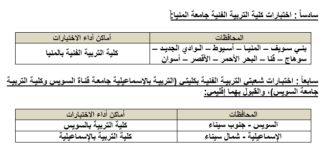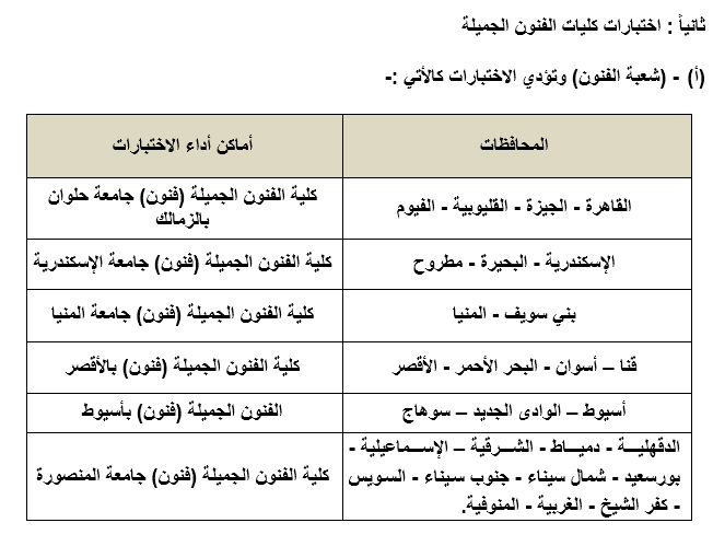● سيتم تسجيل المواعيد واختيار الكليات وأماكن أداء اختبارات القدرات المؤهلة لها، وذلك عن طريق خدمة التنسيق الإلكتروني على شبكة الإنترنت، على الموقع التالي: www.tansik.egypt.gov.eg