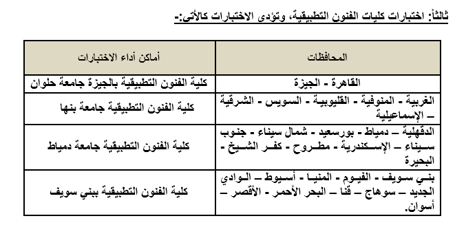 3. كليات الفنون التطبيقية بجامعات(حلوان - دمياط – بنها – بني سويف).