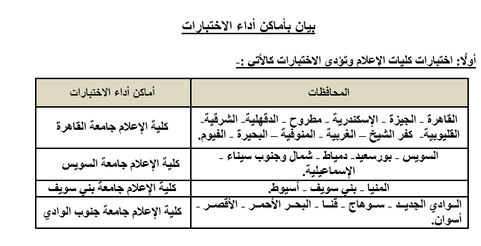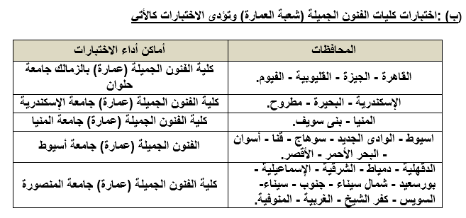 ننشر بيان باماكن اختبارات القدرات لطلاب الثانوية العامة