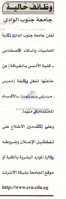 تعلن جامعة جنوب الوادي عن وظائف جديدة لأعضاء هيئة التدريس "من معيد إلي أستاذ" وفقا لنص الإعلان التالي:-