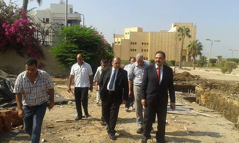 ورافقه في الجولة الدكتور محمد أحمد ضبعون نائب رئيس الجامعة لشئون خدمة المجتمع وتنمية البيئة، والدكتور عماد عتمان عميد كلية الهندسة، والدكتورة عزة الوسيمي عميد كلية التربية الرياضية.