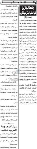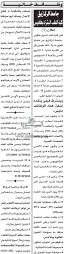 تعلن جامعة الزقازيق عن وظائف جديدة لأعضاء هيئة التدريس "من المعيدين إلي أستاذ" علما بأن أخر موعد للتقديم 1 أغسطس وفقا لنص الإعلان التالي:-