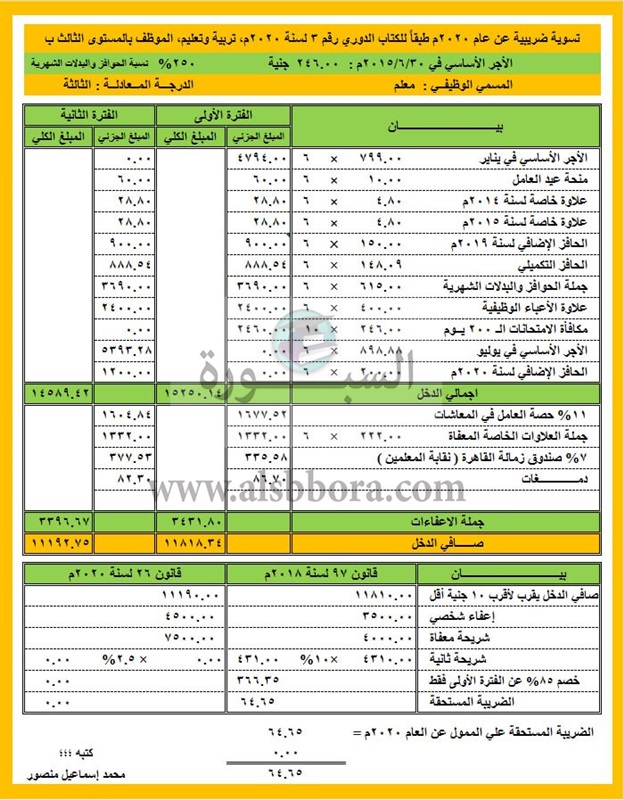 ننشر مفردات مرتب معلم معافاة من الضرائب بدء من اول يوليو 2020.. الدخل السنوى اقل من 15 الف جنيه.. مستندات