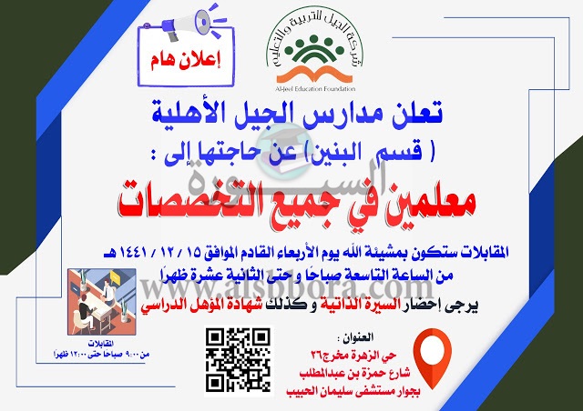 تعلن مدارس الجيل السعودية عن وظائف جديدة للمعلمين والمعلمات وفقا لنص الإعلان التالي:-