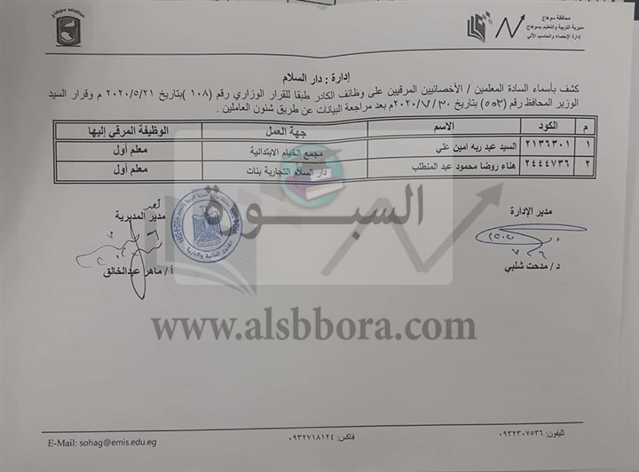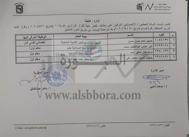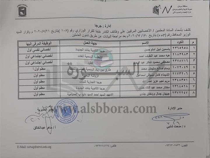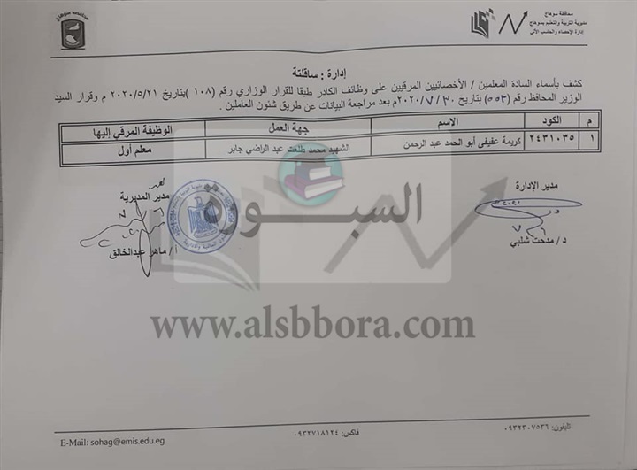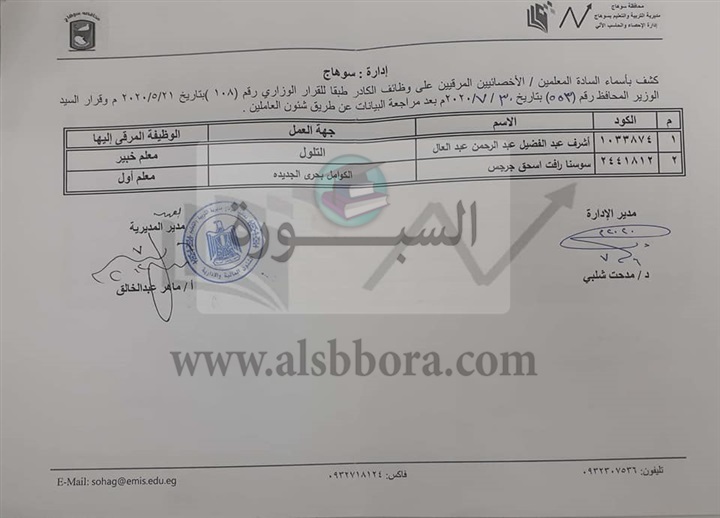 معلم بدرجات متفاوتة وقد ألحق المحافظ الذين تم ترقيتهم إلى قرار سيادته