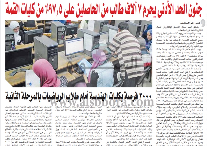 تنسيق الجامعات.. جنون الحد الادني يحرم 7 الاف طالب من الحاصلين علي 97.5% من كليات القمة .. 2000 فرصة بكليات الهندسة بالمرحلة الثانية