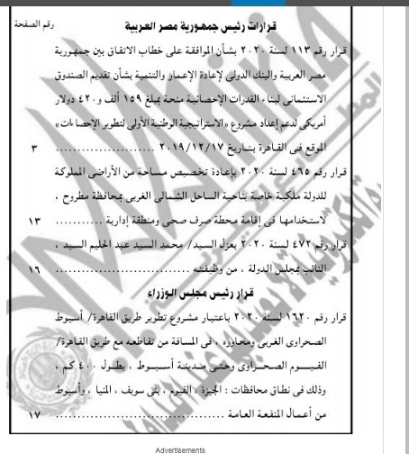 ونشر القر فى الجريدة الرسمية فى عددها الصادر اليوم الخميس .