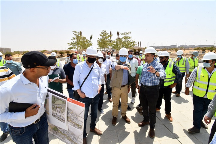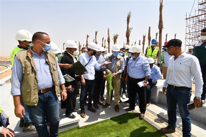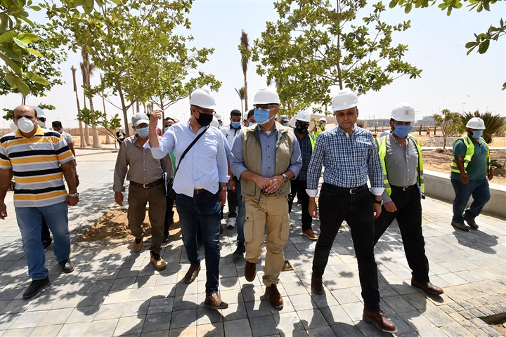 وتجول الوزير ومرافقوه، بجميع قطاعات المشروع، لمتابعة الموقف التنفيذي للأعمال المختلفة الجاري تنفيذها، وتفقد أعمال الزراعة، والتبليطات، والمشايات، والإنارة، وموقف الأجزاء المقرر الانتهاء منها بنهاية الشهر الجاري، حيث شدد على ضرورة الاهتمام بجودة جميع الأعمال المنفذة.