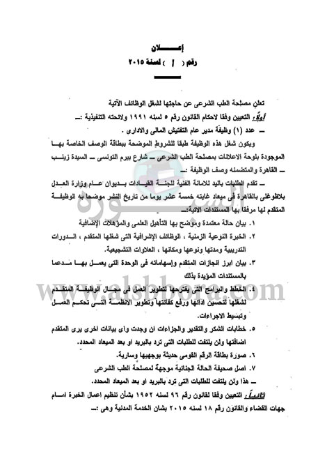 1- معاون طبيب شرعى العدد 29 "تقديرعام جيد على الالقل"