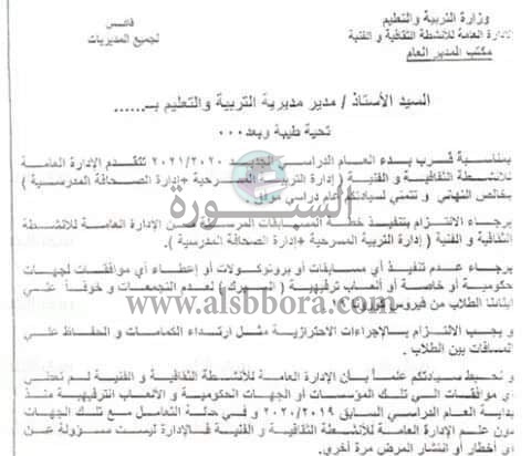اصدرت وزاره وزاره الترببه والتعليم و التعليم الفنى تعليمات رسمبه لجميع المديريات والادارات التعليميه شدد فيها على عدم تنفيذ أي مسابقات أو بروتوكولات.