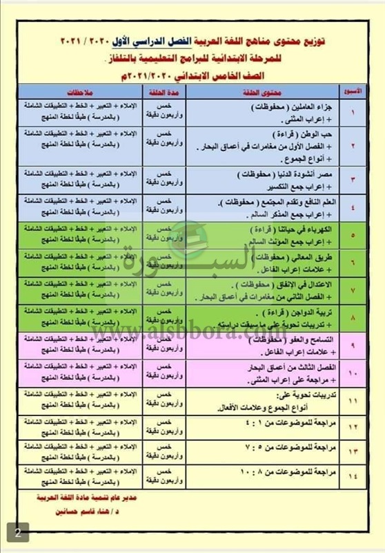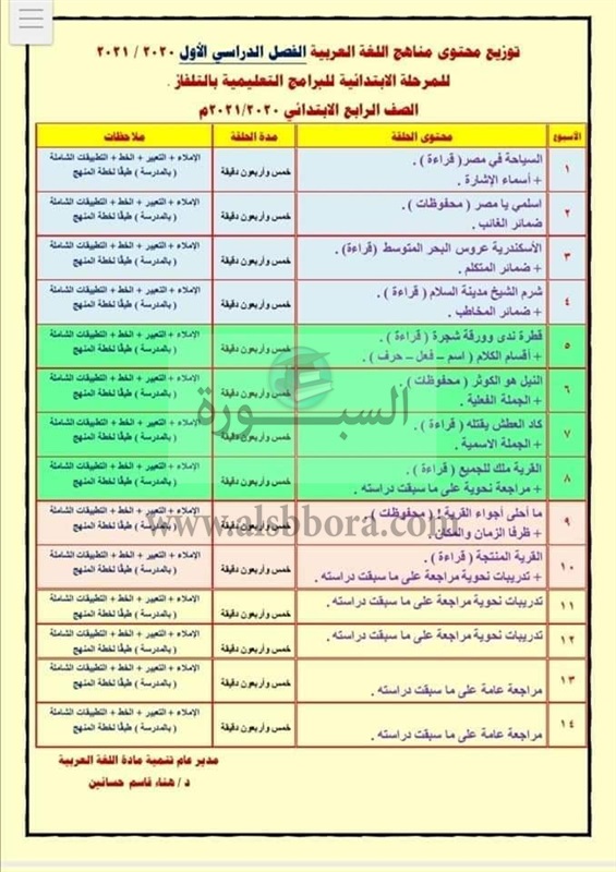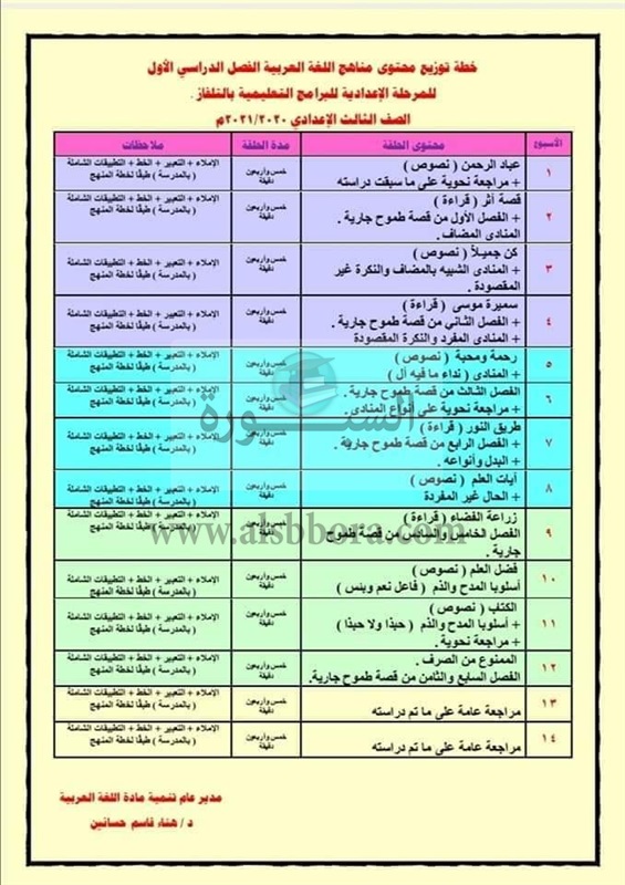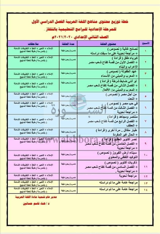 جدول البرامج التلفزيون للمرحلتين الاعدادية والابتدائية للفصل الدراسى الاول 2021/2020 .. "مستند"