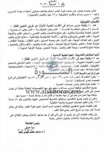 تعلن جامعة حلوان عن وظائف جديدة لأعضاء هيئة التدريس "من معيد إلي أستاذ" أخر موعد للتقديم 21 اكتوبر وذلك وفقا لنص الإعلان التالي:-