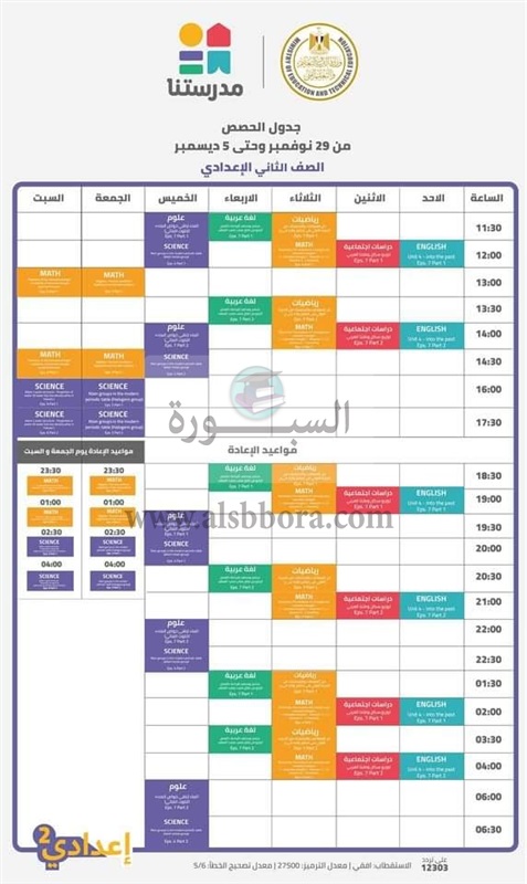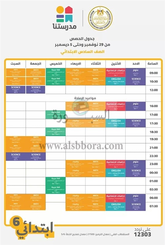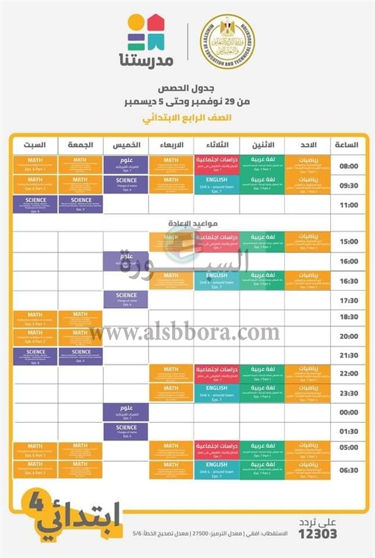 جدول الأسبوع السابع بقناة "مدرستنا"