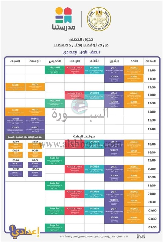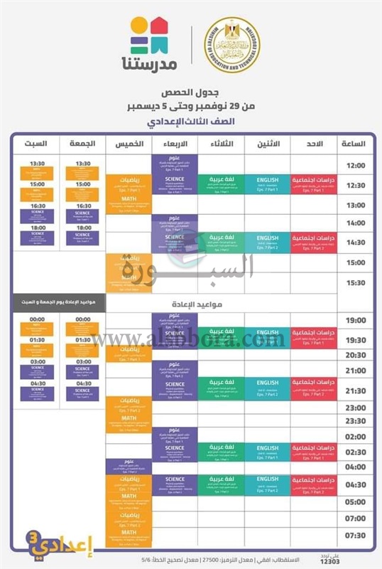تنشر "السبورة" جدول الأسبوع السابع بقناة "مدرستنا" والذي تمثل في اتلآتي:-