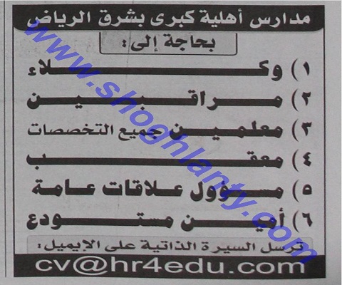أعلنت السعودية عن حاجتها للتعاقد مع معلمين بمرتبات مجزية وذلك للاستفادة من خبراتهم خلال العام الدراسي 2016/2015 وذلك في الخصصات التالية:-