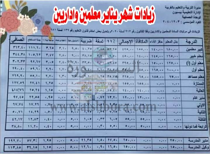 تنشر "السبورة" جدول زيادات شهر يناير للمعلمين والإداريين والذي تم اعتماده مؤخرا