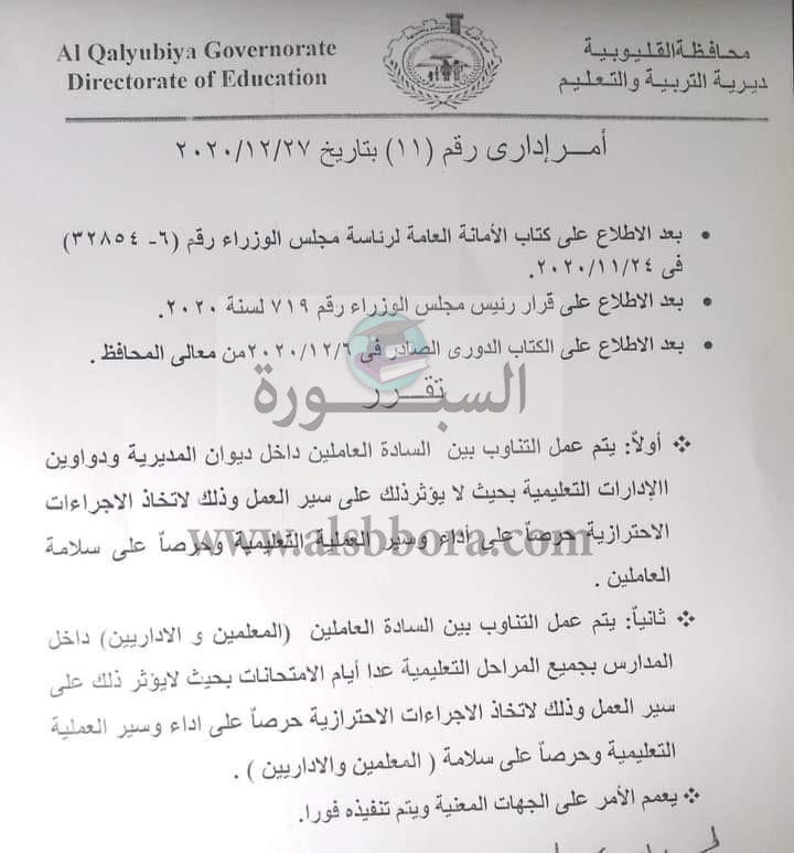 عاجل| ننشر القرار رقم 11 بشأن التناوب بين المعلمين والإداريين بالمدارس "مستند"