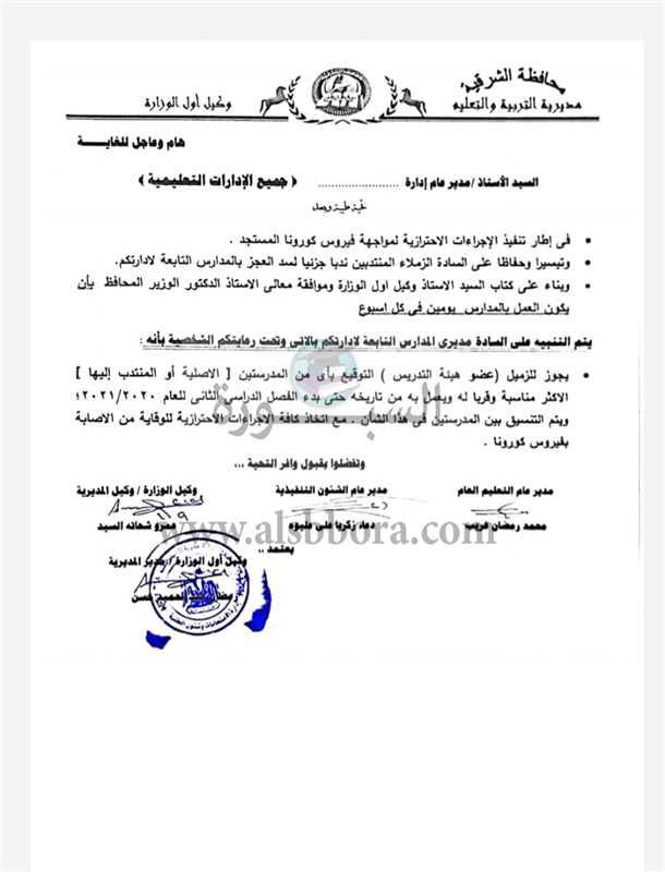 أصدرت مديرية التربية والتعليم في الشرقية قرارا هاما بشأن تسجيل حضور المعلمين في المدراس .