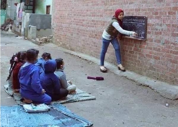رأت الاطفال الذين رحمتهم كورونا من الذهاب الى مدراسهم يلعبون لعبة استاذ وابلة، واذا هى تستلهم هذه الفكرة وتعرض عليهم ان تقوم بتعليمهم القراءة والكتابة وتدرس لهم وهم يتراوح اعمارهم ما بين الاربع سنوات والتسع سنوات مؤكدة عليهم الالتزام بالاجراءات الاحترازية لهم ضد الفيروس اللعين.