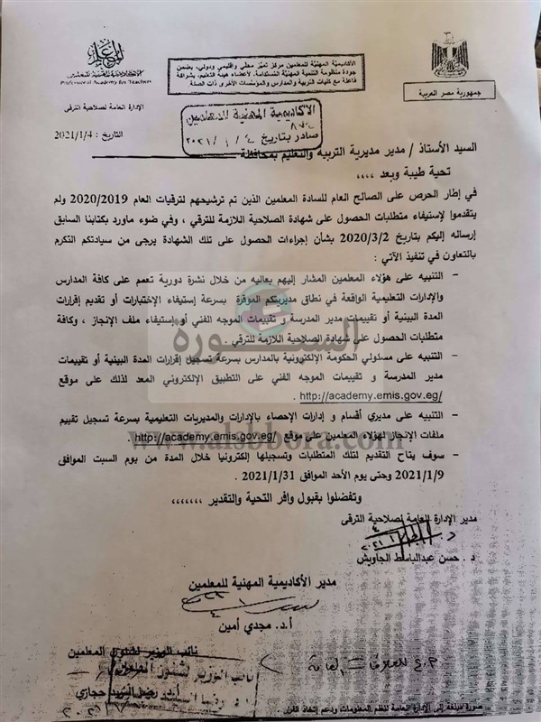 بالمستندات| الأكاديمية المهنية تصدر عدد من التنبيهات الهامة بشأن ترقيات المعلمين