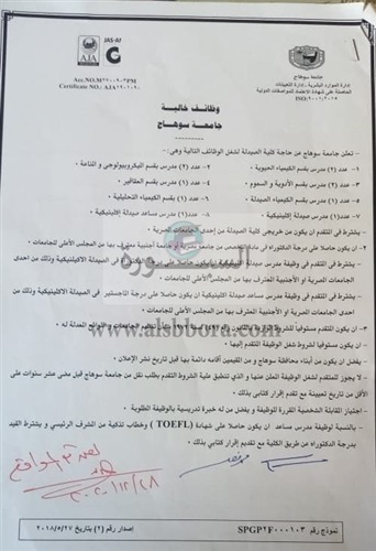 أعلنت جامعة سوهاج حكومية تعلن عن وظائف جديدة لأعضاء هيئة التدريس في 11 تخصص وفقا لنص الإعلان التالي:-