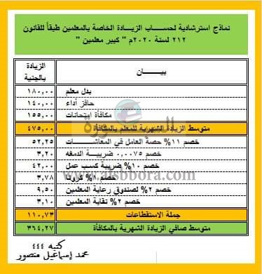 وينشر موقع السبورة جدول الزيادات كبير معلمين بعد الخصم والتى جاءت 364.27 جنيها، وفيما يلى مفردات الزيادة: