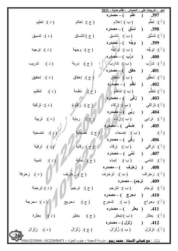 446 سؤالا بالنظام الحديث للغة العربية للثانوية العامة لن يخرج عنهم امتحان اخر العام