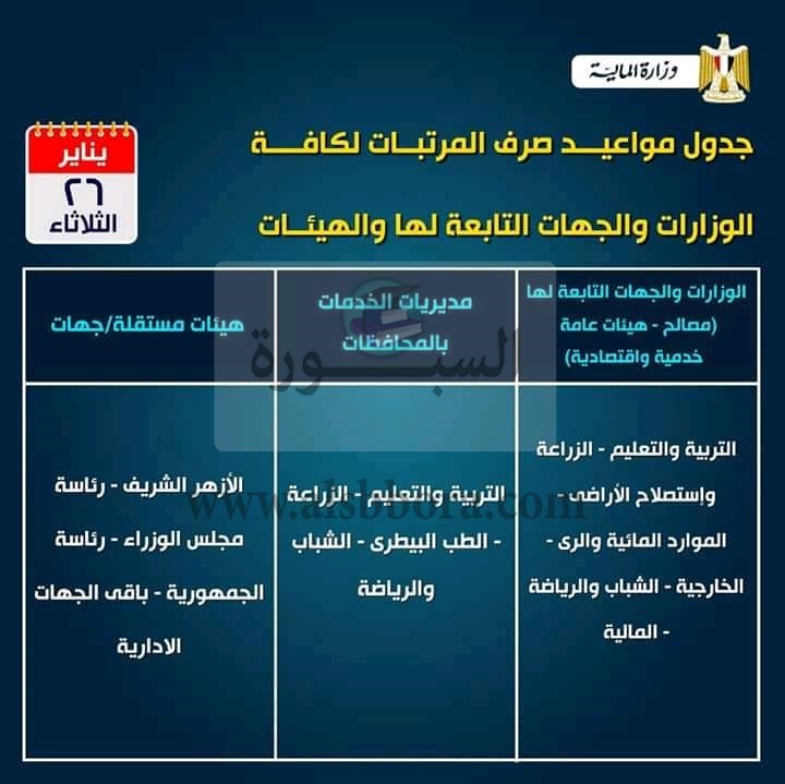 وإليكم جدول مواعيد صرف مرتبات المعلمين:-