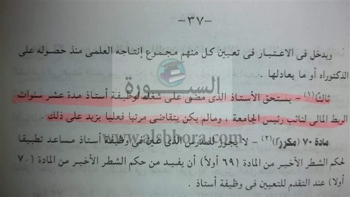 عضو هيئة التدريس الذى مر عليه 10 سنوات فى درجة استاذ.. يتقاضى مرتب نائب رئيس جامعة.. مستند