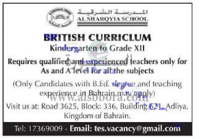 تعلن المدرسة الشرقية بالبحرين عن وظائف جديدة للمعلمين والمعلمات وفقا لنص الإعلان التالي:-