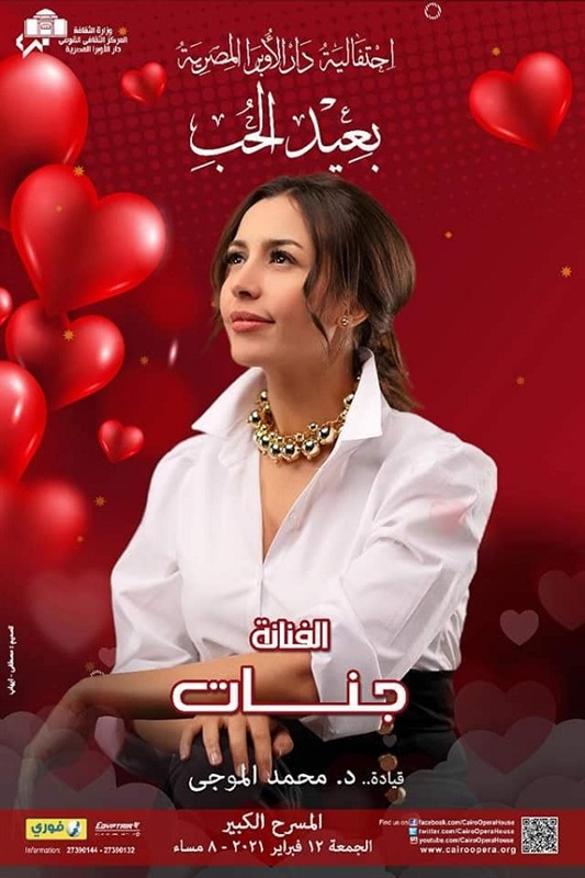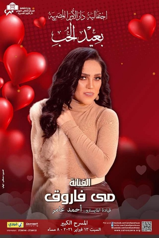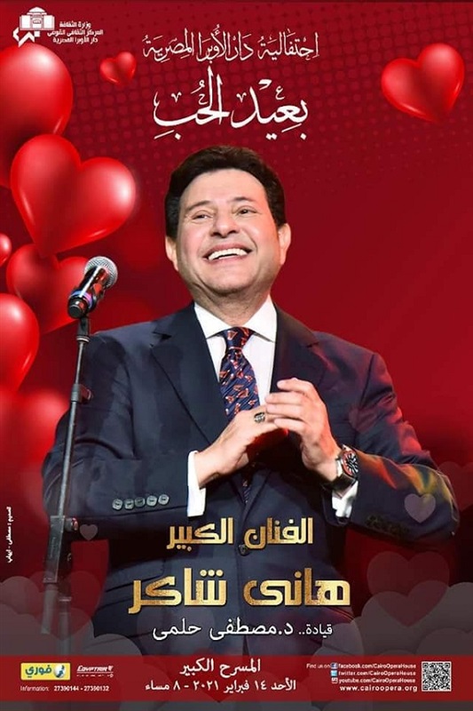تحت رعاية الفنانة الدكتورة ايناس عبد الدايم، وزيرة الثقافة، تنظم دار الاوبرا المصرية برئاسة الدكتور مجدي صابر سلسلة حفلات بمناسبة عيد الحب تضم خمسة ليالى متتالية ويشارك فيها ١٥ مطرب وموسيقي من مصر والوطن العربي تبدا فى الثامنة مساء الخميس 11 فبراير وتستمر حتى الاثنين 15 فبراير على المسرح الكبير ويحييها نخبة من نجوم الغناء والموسيقى المصريين والعرب في قلب القاهرة النابض بالثقافة والفنون.
