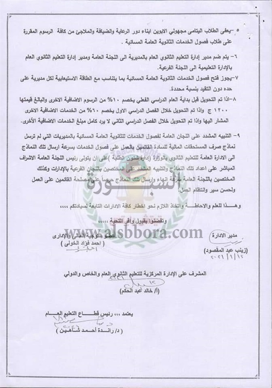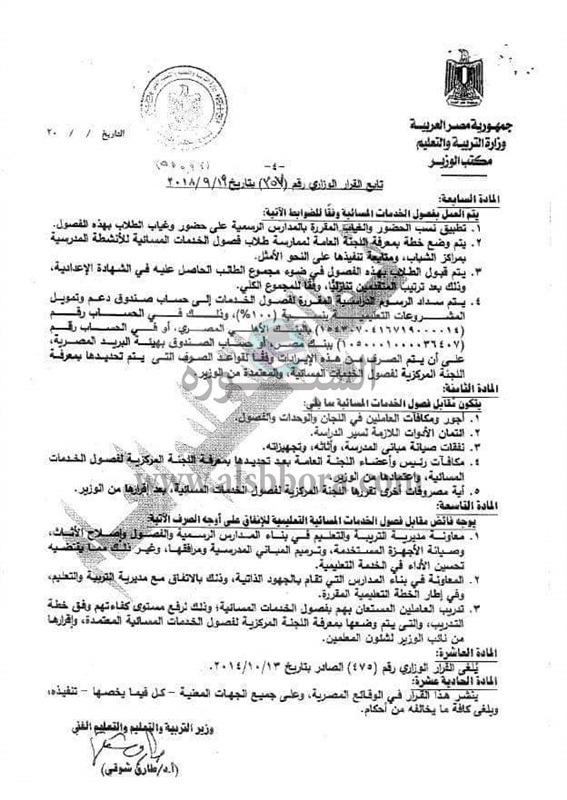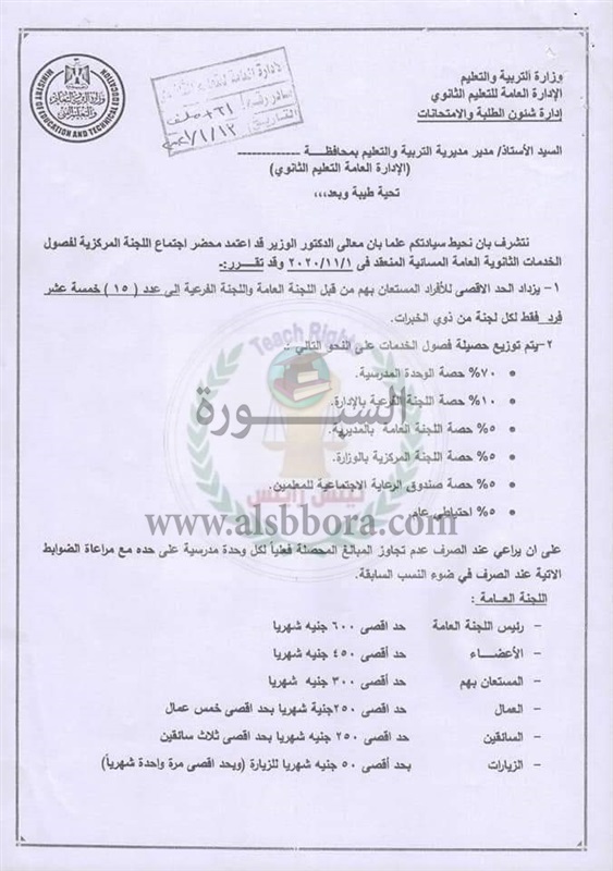 إنتقدت مجموعة معلمي مصر المستقبل القرار الذي تم توزيعه على المديريات التعليمية المختلفة بفتح نسبة فصول الخدمات للثانوي العام والتي تقبل بمجموع أقل من تنسيق الثانوي بحدود من ٢٠ إلى ٣٠ درجة وبمصروفات أضافية تبدأ من ١٢٠٠ جنيها وكان القرار الوزاري السابق يحدد نسبة أعداد الطلاب المتقدمين لها ألا يتجاوز ٢٥% من عدد طلاب الثانوي بكل إدارة، لكنه الحاكم بامر الله خالد عبد الحكم المشرف على الإدارة المركزية للتعليم الثانوي والخاص والدولي ...