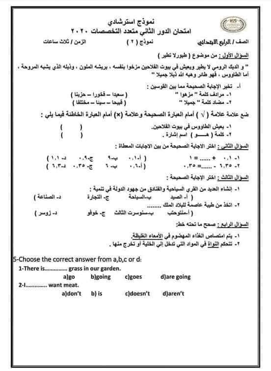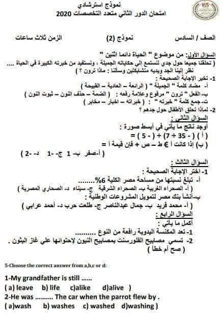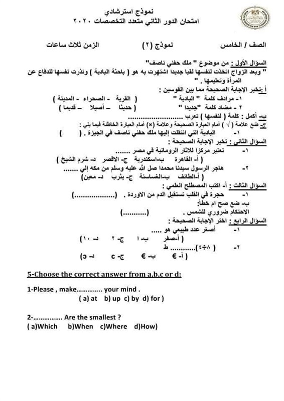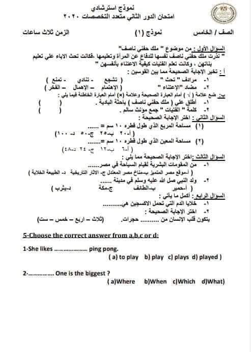 ننشر نماذج امتحانات من الصف الرابع الى السادس الابتدائى للنظام الجديد.. متعدد التخصصات